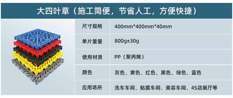 正和大四葉草產品厚度為40mm,是2018年正和公司最新開發的全新洗車車間專用產品。